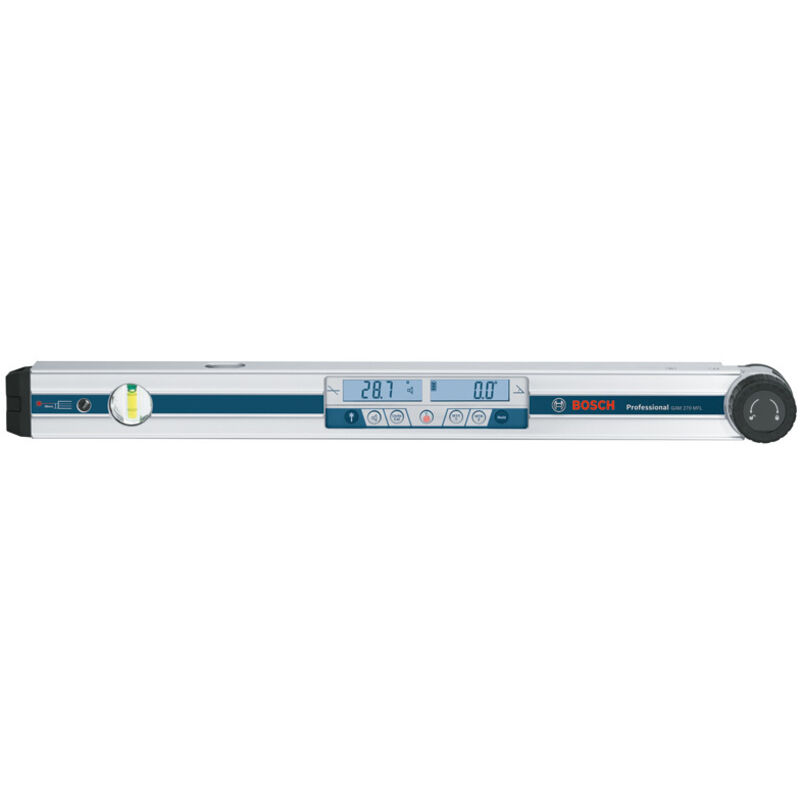 GAM 270 MFL Il misuratore d'angolo digitale e l'inclinometro GAM 270 MFL forniscono una misurazione angolare precisa fino a 270° con una precisione di +/- 0,1°. È robusto con protezione IP54 contro polvere e spruzzi d'acqua. Strumento due in uno, misuratore d'angolo e inclinometro con trasferimento preciso al laser con una lunghezza di 60 cm. È ottimo per il calcolo dell'angolo di inclinazione in quanto fornisce il calcolo automatico di angoli di inclinazione singoli e doppi senza altri strumenti. Con l'aiuto del laser, le misure di inclinazione possono essere prese e trasferite fino ad una portata di 30 m. Esso conta con una funzione di blocco, in modo che gli angoli possano essere trasferiti con precisione sui pezzi in lavorazione per mezzo di una vite di bloccaggio meccanica. Ottimo in combinazione con seghe trasversali e troncatrici IN DOTAZIONE: • GAM 270 MFL • 4x batterie AA • Estensione della gamba • Sacchetto di protezione