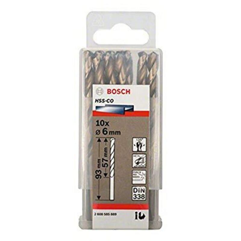Vantaggi Lunga durata per la foratura dell'acciaio inossidabile La lega di cobalto de e la rettifica completa HSS garantiscono resistenza all'usura e protezione dal calore. Due frese e due scanalature rimuovono rapidamente i trucioli in modo che le punte durino ancora di più. Punte prodotte secondo a DIN 338, tipo N (angolo de flauto), con punta de 135 gradi e tolleranza de h8 diametro. La punta spaccata a punta facilita il taglio attivo e il perfetto centraggio senza offset Acciaio inossidabile Specifiche Specifiche: 6 x 57 x 93 mm: Testo del prodotto of, grey accessories:Package of 10 pcs: Diametro (D) mm:6,00: Lunghezza de lavoro (L1) mm:57: Lunghezza totale (L2) mm:93: Materiali lavorabili incluso dettaglio:Metalli ferrosi. Acciaio/metallo ferroso: SOL Data:07.07.2008: Nuovo:No: Unità per pallet:2400: Peso lordo:0,18:kg Peso netto:0,18:kg Lunghezza:120:mm Altezza:23:mm Larghezza:47:mm Informazioni aggiuntive Lunga durata per la foratura dell'acciaio inossidabile La punta da
