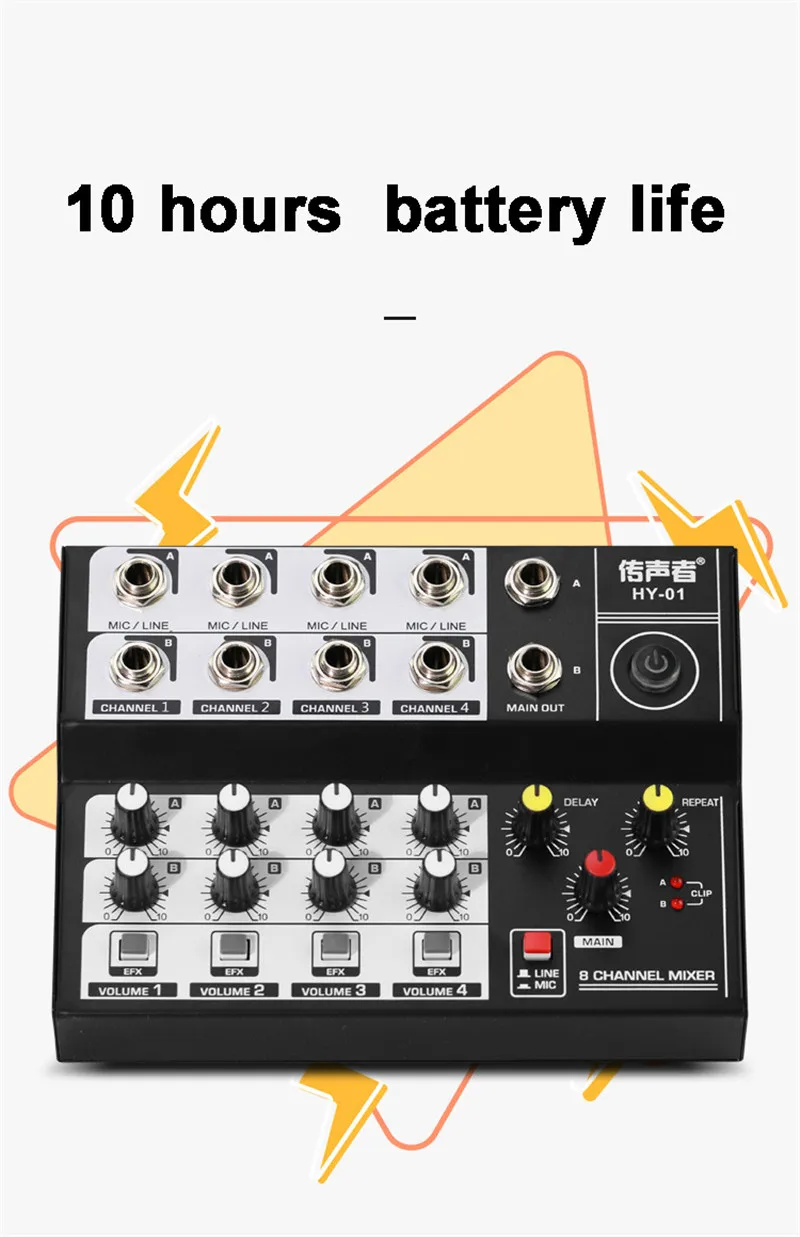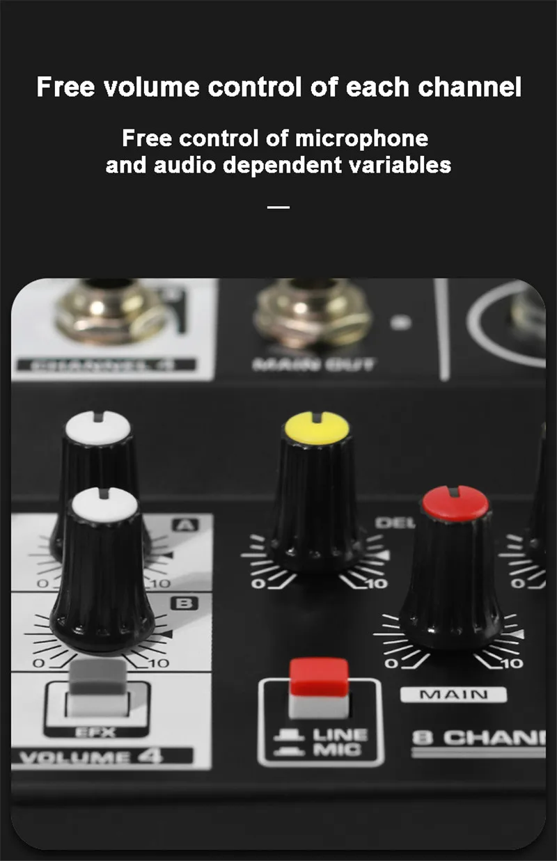 Professional Karaoke Mixer 8 channel Sound Audio Mixing Console With Reverb Smart LCD Display 48V phantom power for Karaoke KTV