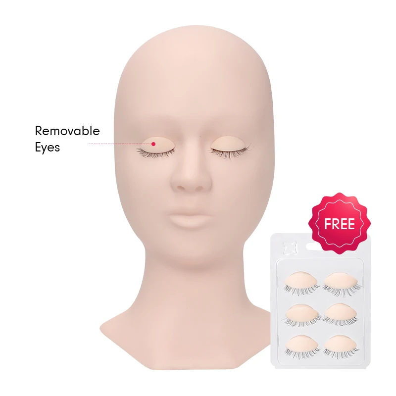 Professional Mannequin Training Head for Eyelash Extention 3 Pairs Eyes Replaceable Makeup Practice Reusable Head Removable Eyes