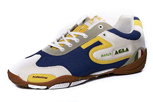 AGLA PROFESSIONAL MATCH INDOOR scarpe calcetto futsal calcio a 5 anti-shock system (44, bianco/blu/giallo)