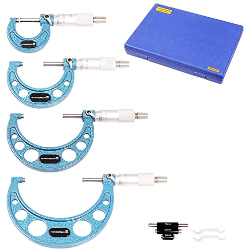 4 Pcs Professional Premium Outside Micrometer Precision Machinist Tool Set 0-25mm/25-50mm/50-75mm/75-100 Measuring Range Included 0.01 Graduation