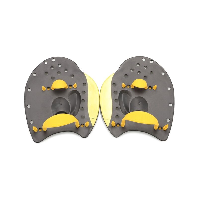 Features:Swimming practice tool for correcting strokes.Wide area wrist and finger straps are adjustable for a secure fit.Made of high quality material, durable and wear resistant, has long service time.Wide blade design for optimal water contact and increased upper body's strength.The holes allow water to be directed through the vanes, so the flow is unobstructed with each stroke.Specifications:Material: PolypropyleneSize: S/M/LColor: Blue/Yellow/RedPackage Includes:1 Set Swiming FinsNote:Please allow 1-2cm errors due to manual measurement, make sure that you do not mind before you order. Due to the difference between different monitors, the picture may not reflect the actual color of the item.