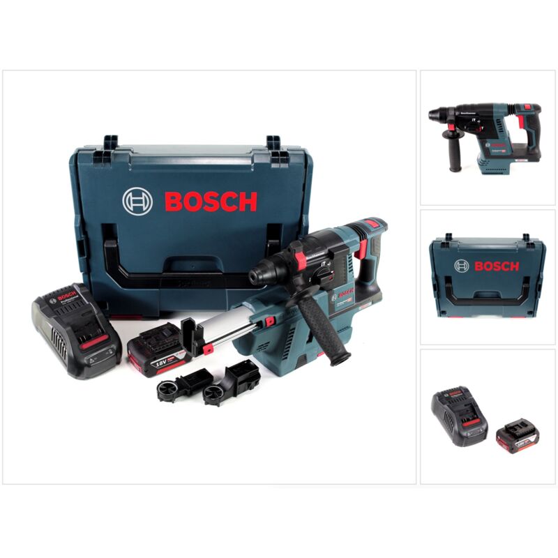 Dotazione: - Bosch GBH 18V-26 Professional Tassellatore a batteria SDS-Plus - 1x Batteria Bosch GBA 18 V 5,0 Ah / 5000 mAh ( 2607337069 ) - 1x Caricabatterie Bosch GAL 1880 CV per batterie al litio da 14,4V a 18V ( 1600A00B8G ) - 1x Valigetta L-Boxx 136 ( 1 600 A00 1RR ) - 1x Inserto per L-Boxx - 1x Bosch Professional GDE 18 V - 16 Aspiratore a batteria in cartone ( 1600A0051M - non entra nella valigetta L-Boxx ! ) - 1x Panno - 1x Impugnatura supplementare con arresto di profondità Descrizione prodotto: Il tassellatore a batteria Bosch GBH 18 V-26 si distingue per la sua elevata potenza d'impatto di 2,6 joule. La tecnologia KickBack Control offre maggiore sicurezza in caso di blocco grazie all'arresto automatico degli utensili e l'Electronic Precision Control (EPC) offre ancora maggiore controllo, grazie alla regolazione della potenza. Il tassellatore a batteria Bosch GBH 18 V-26 è estremamente compatto e leggero, consentendo di lavorare con meno sforzo. Grazie al motore senza