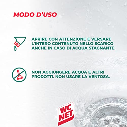Prodotto: Wc Net Professional Turbo elimina gli ingorghi più difficili e ostinati in 5 minuti, proteggendo le tubature. Indicato per gli scarichi di cucina, bagno e doccia