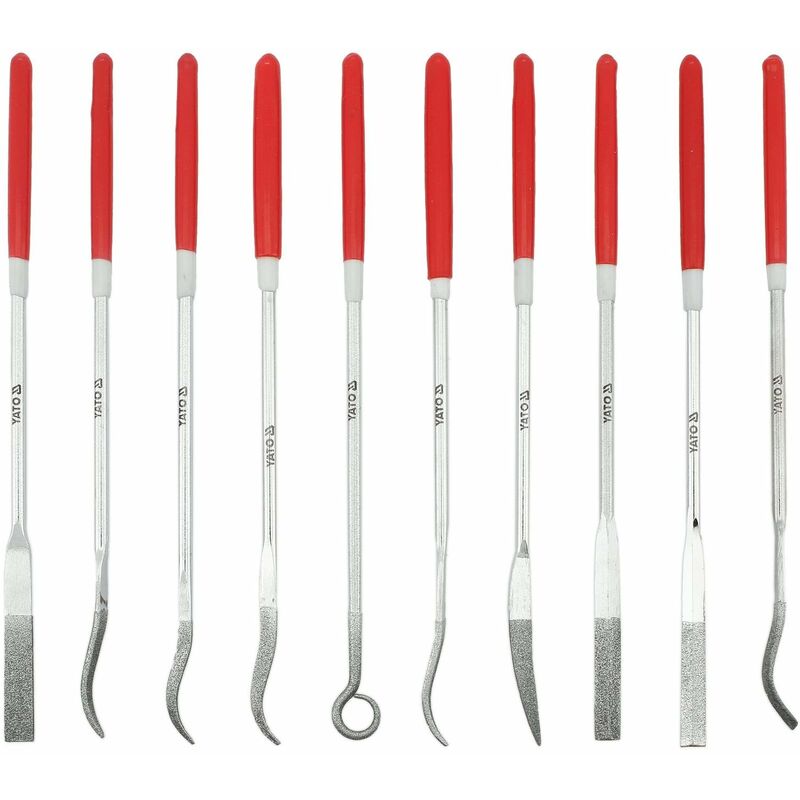 Lima Set con 10 Lime, lunghezza totale 140 mm, lunghezza di lavoro 25 mm esistente forme: piatto, rotondo, semicircolare, triangolare, quadrato, ovale, lama Tutte le lime sono come d' onda curvo, ideale per forme piene e cavità La custodia Lime hanno una grana di 150, confezionato in plastica ad innesto Ottimo - Set lime, buona prolungata e prestazione abrasiva - Set con 10 Lime, lunghezza totale 140 mm, lunghezza di lavoro 25 mm - Le forme: piatto, rotondo, semicircolare, triangolare, quadrato, ovale, lama - Tutti i file sono come albero piegato, ideale per Curve e cavità - I file hanno una grana di 150 - Confezionati in plastica ad innesto Cover - Eccellente set Lime, buone prestazioni di rimozione del tempo di stand e