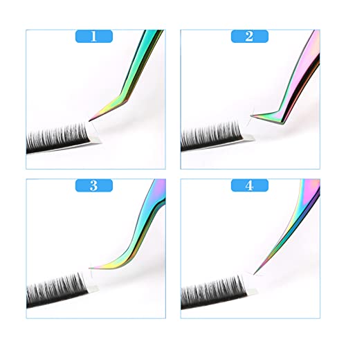 Pinze professionali: realizzate in acciaio inossidabile di alta qualità con arcobaleno lucido, antimagnetico non corrosivo, forte e durevole. Appositamente progettato per raccogliere facilmente le ciglia e le estensioni delle ciglia voluminose. Perfetto per selezionare le ciglia o separare le ciglia naturali.