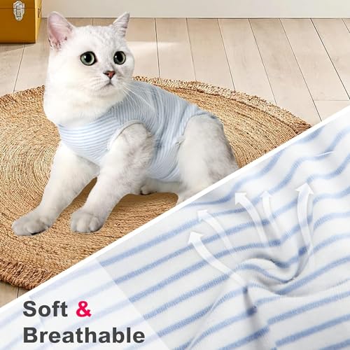 Tuta Professionale per Gatto, per Recupero Chirurgico, per ferite Addominali, Bende coniche e collari elettronici alternativi per Gatti Dopo l'intervento Chirurgico (Blu,m)