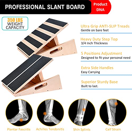 Professionale in legno Slant Board, inclinazione regolabile polpaccio elasticizzato, 40,6 x 31,8 cm, 5 posizioni (capacità 136,1 kilogram)