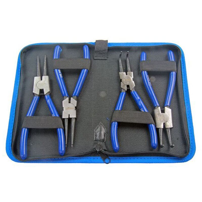 1 pinza esterna dritta. 1 pinza interna dritta. 1 pinza esterna piegata. 1 pinza interna piegata. Dimensioni: 175 mm. Maniglie blu