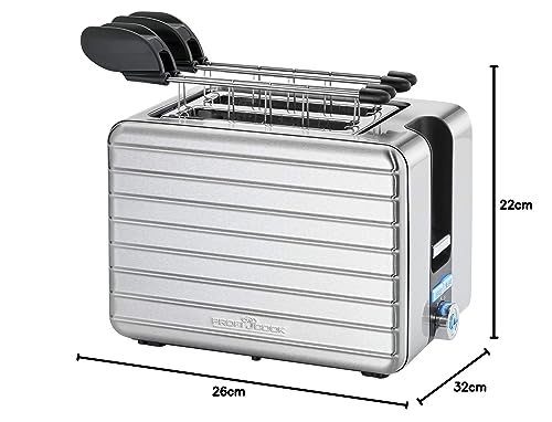 Proficook di Taz 1110 Compatto e pinza per tostapane 2 fette con ampi Toast e scomparti per carte di credito, 40 mm, in acciaio inox, inox