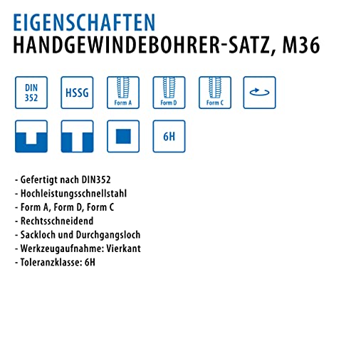 PROFI rubinetti M36 set HSSG 3 pezzi, rubinetti a mano, maschiatrici