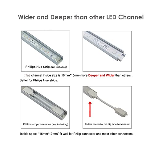 [Perfetto per strisce LED] Adatto per la maggior parte dei tipi di strisce LED popolari. Il profilo in alluminio per striscia led L'interno è di 16 mm, perfetto. basta attaccare il supporto adesivo della striscia LED all'interno del canale in alluminio, agganciando il coperchio del diffusore. Adatto anche per strisce LED impermeabili o qualsiasi striscia LED inferiore a 16 mm di larghezza x 8 mm.