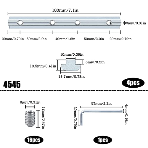 Profili Alluminio Strutturali Linea Retta Connettore Staffa Giunto per Profilati Alluminio con Profilo Estruso Serie 45 x 45 Con Viti e Chiave Inglese Utilizzato per Profilo in alluminio(4 pezzi)