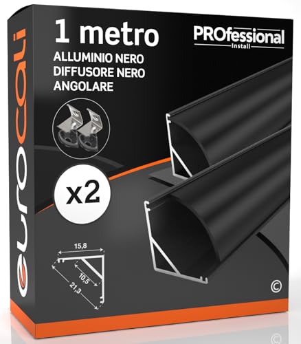 2 Profili Angolari da 1 metro (2mt) in Alluminio Nero per Strisce LED Copertura Opaca larghezza max striscia led 10.5 mm - 15.8 x 15.8