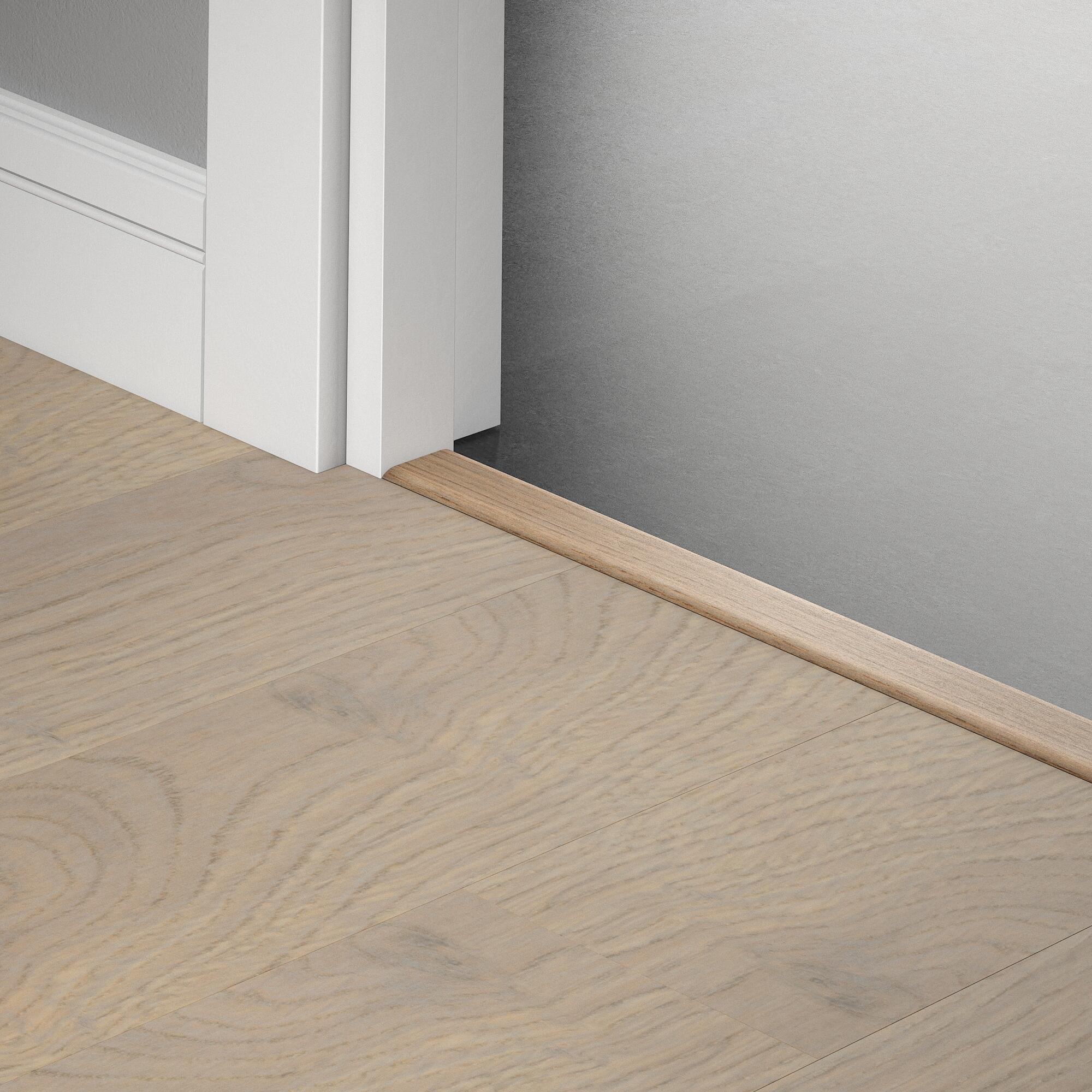 Un profilo con tre utilizzi per rivestire i giunti di dilatazione: - su suoli di pari livello - su piani a diversi livelli - come profilo finale prima del muro 2 opzioni di montaggio: incollaggio o ancoraggio Adatto per pavimenti in parquet. ideale per coprire giunti di dilatazione.. Ideale per pavimenti in parquet. Un prodotto, tre usi, due opzioni di montaggio.. Elevata stabilità grazie all'uso dell'alluminio. Decoro identico al pavimento e allo zoccolo.