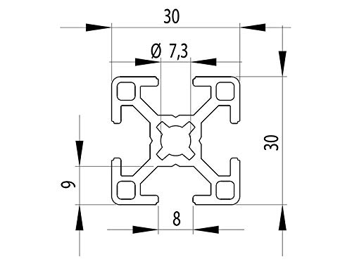 Profilo in alluminio 30x30 B-Typ Nut 8, lunghezza standard (7,80 EUR/m)
