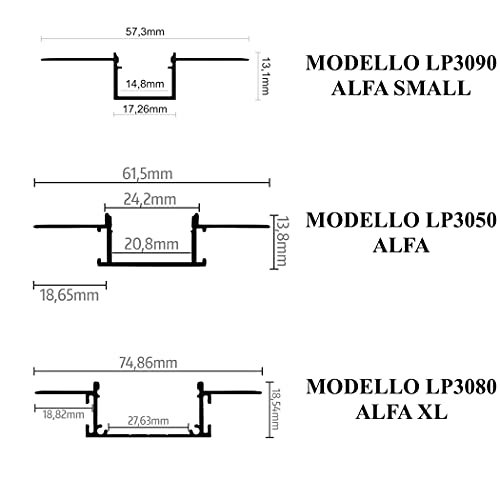 Profilo in Alluminio da 2 mt incasso a scomparsa in Cartongesso per Striscia a Led cover Opaca (ALFA)