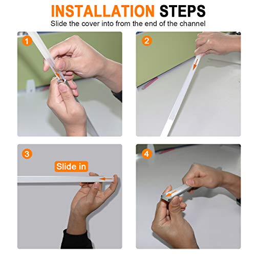 Il pacchetto include: 10 pcs canale in alluminio, 10 pcs copertura lattea, 22pcs terminali e 22pcs montaggio 22pcs Clip di montaggio, 22pcs vite lunga, 22pcs vite corta, 22pcs tappi terminali gialli.