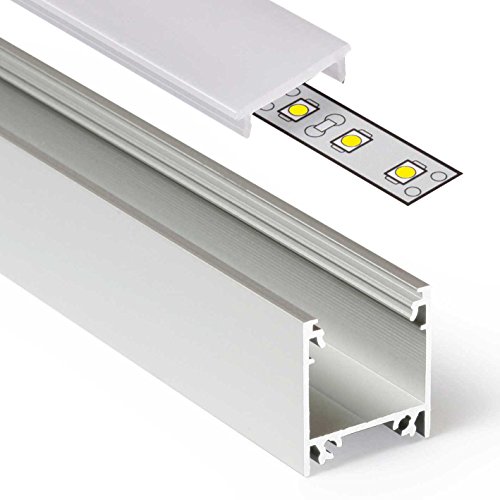 Binario in alluminio da 100 cm, adatto per strisce LED flessibili e rigide (fascio luminoso) fino a 20 mm di larghezza per ogni striscia LED