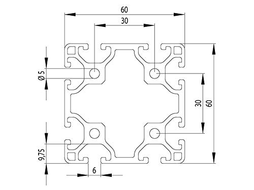 Profilo in alluminio 60 x 60 L, tipo I, scanalatura 6 (leggero), argento anodizzato. Profilo in alluminio 60 x 60, profilo in alluminio 60 x 60, profilo di montaggio 310 mm