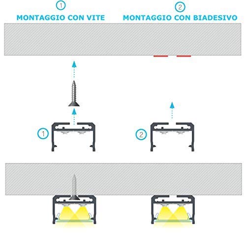 Cover a scelta: - opaca / frost con 80% della luce trasmessa, copertura dei led e in base alla quantità di chip/mt della striscia led, l'effetto puntinato dei led stessi sarà più o meno visibile;