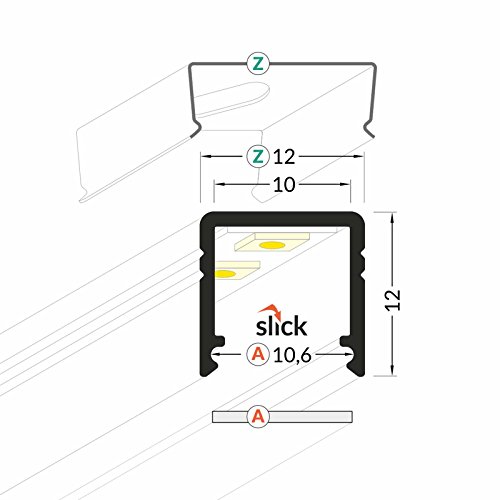 Profilo in alluminio per LED SMART (SM), 1 m, anodizzato, per strisce LED, set con guida di copertura bianco latte opale con clip di montaggio e tappi terminali (1 metro bianco latte)