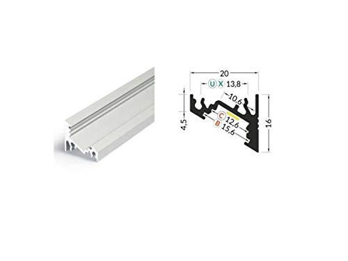 PROFILO ANGOLARE ANGOLARE BIANCO 16mm 30/60 ° 2mt + COVER SATINATO + TERMINALI + STAFFE