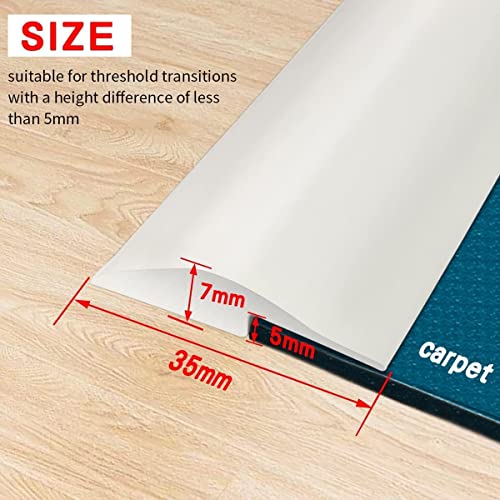 Profilo in PVC, autoadesivo, per pavimenti e tappeti, in laminato e montagna, autoadesiva, per tappeti, transizione soglia, altezza inferiore a 5 mm (bianco, 6 m)