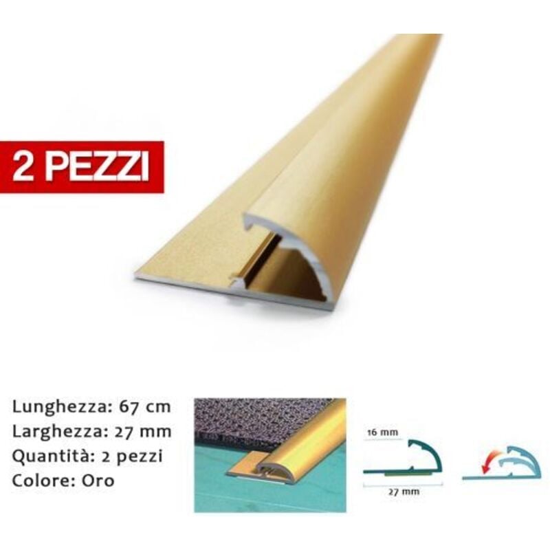 BLOCCA PASSATOIA 2 PEZZI Blocca passatoia in alluminio anodizzato in confezione da 2 pezzi. Dimensioni Larghezza: 27 mm. Lunghezza: 67 cm. Colore: Oro.