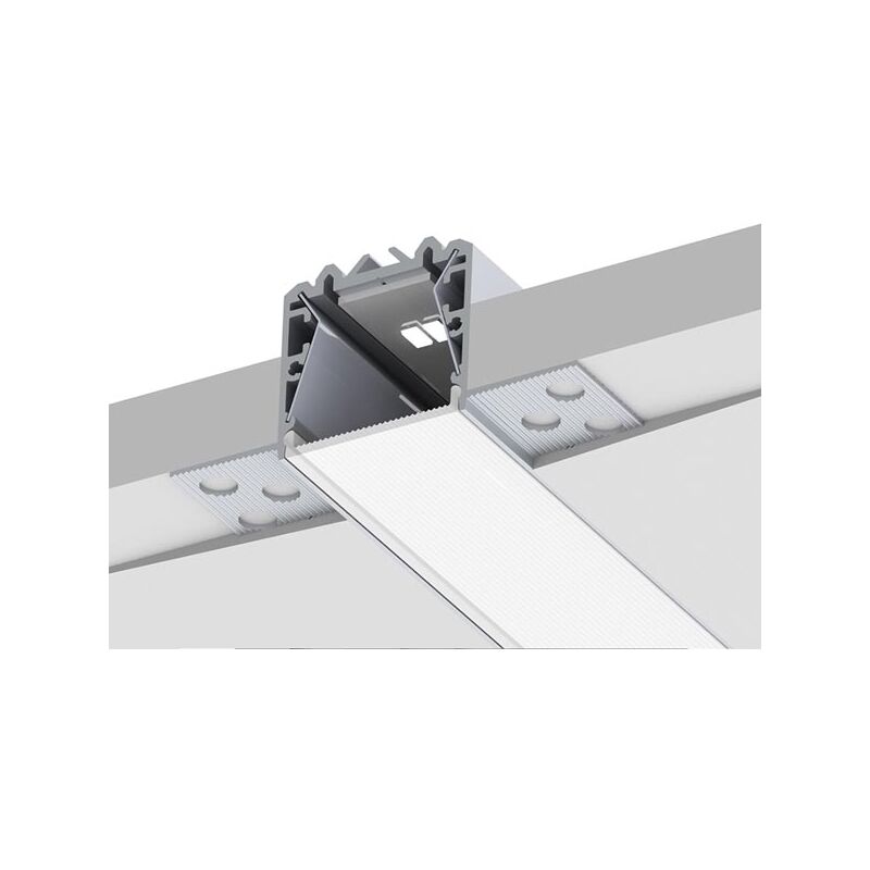 Narrow, high-quality raw aluminum profile for plasterboard ceilings and walls. Innovative design provides unique features such as: Premade angle modules, mounting rail for the junction box and dedicated openings for the ease of installation. The profile is also equipped with reflectors made of highly polished aluminum designed for better light distribution (improvement of luminaire efficiency;