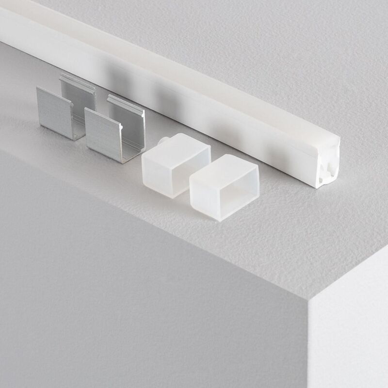 Il Profilo Flessibile in Silicone Neon su Misura per Strisce LED 12/24V fino a 10mm può essere installato in tutti i tipi di installazioni con strisce LED all'interno, appositamente progettato per proteggere e nascondere le strisce LED, consentendo installazioni professionali, pulite ed eleganti. I profili in silicone sono flessibili e quando la striscia di LED è installata si ottiene un effetto di luce al neon. Sono fatti per illuminare ambienti moderni con una luce indiretta pulita ed elegante . Grazie alla copertura opaca si crea un effetto di luce diffusa che è piacevole per gli occhi. Inoltre, la sua installazione è molto semplice, include un cavo all'interno che facilita il montaggio della striscia, in questo modo è possibile legare l'estremità del cavo all'estremità della striscia e una volta collegato allungare l'altra estremità del cavo fino a quando la striscia LED è completamente inserita all'interno del profilo. Include anche punti metallici e tappi di chiusura per una