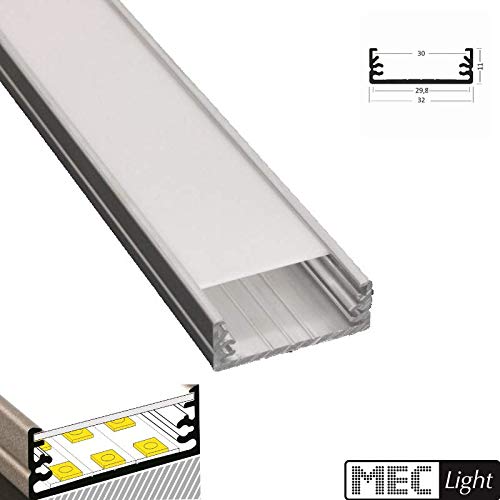 Profilo LED largo 3,2 cm in alluminio anodizzato per strisce LED da 2 m, con copertura resistente ai raggi UV, per strisce LED fino a max. 29,8 mm (argento, 2 m latte)