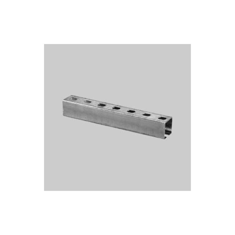 In acciaio zincato spessore 2,5 mm. Asole mm 20x12, interasse asole mm 40. Utilizzato per fissare collari, piastre ed accessori. Ideale per grandi sbalzi o carichi importanti. Profilo pesante 41x61 mm - barra 2 mt Profili e mensole di fissaggio