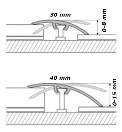 Profilo di transizione, profilo di espansione, binari per tappeto, profilo di chiusura, profilo di adattamento.