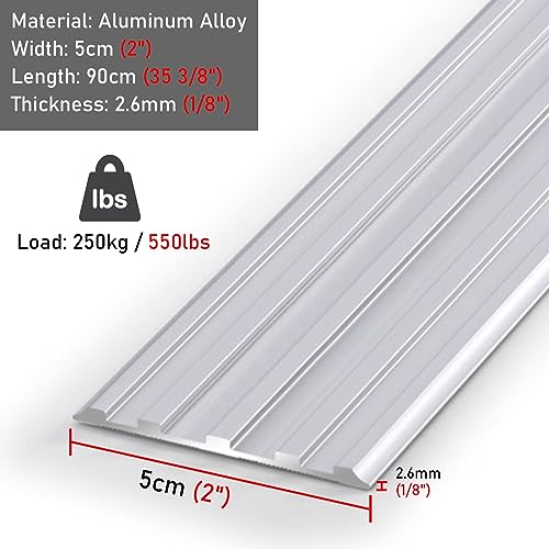 【Dimensioni della striscia di transizione】Striscia di soglia larga : 5 cm (2 "), spessore: 2,6 mm (1/8"), lunghezza: 90 cm (35 3/8 "). Adatto per il pavimento stesso altezza. Carico massimo: 250 kg/550 libbre.