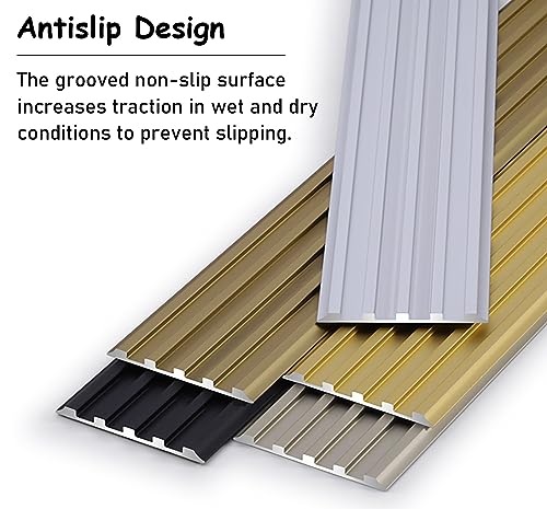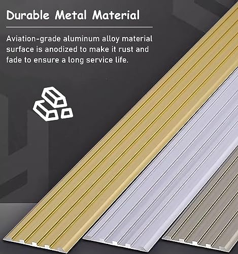 【Alluminio resistente pesante】Realizzata in lega di alluminio solido di alta qualità, la superficie delle strisce di transizione è resistente ai graffi, resistente all'abrasione, resistente allo sporco. È facile da pulire e non macchiarsi. Sta rendendo una transizione senza soluzione di continuità anche per camminare.