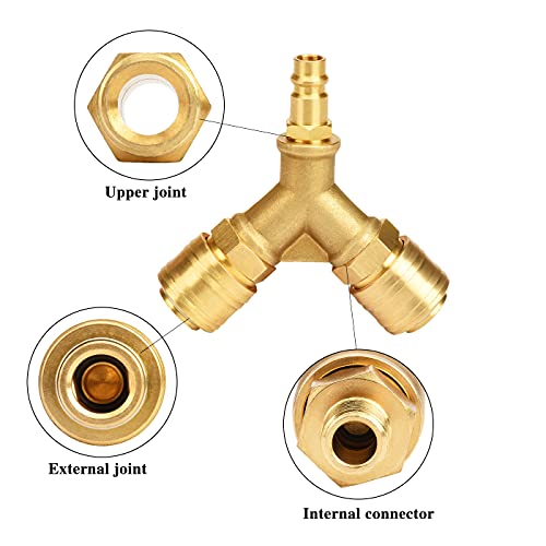 Profiwoab 1/4 zoll Distributore di aria compressa a 2 vie con 2 giunti Distributore di raccordo rapido per tubo dell'aria, Distributore di aria compressa in ottone