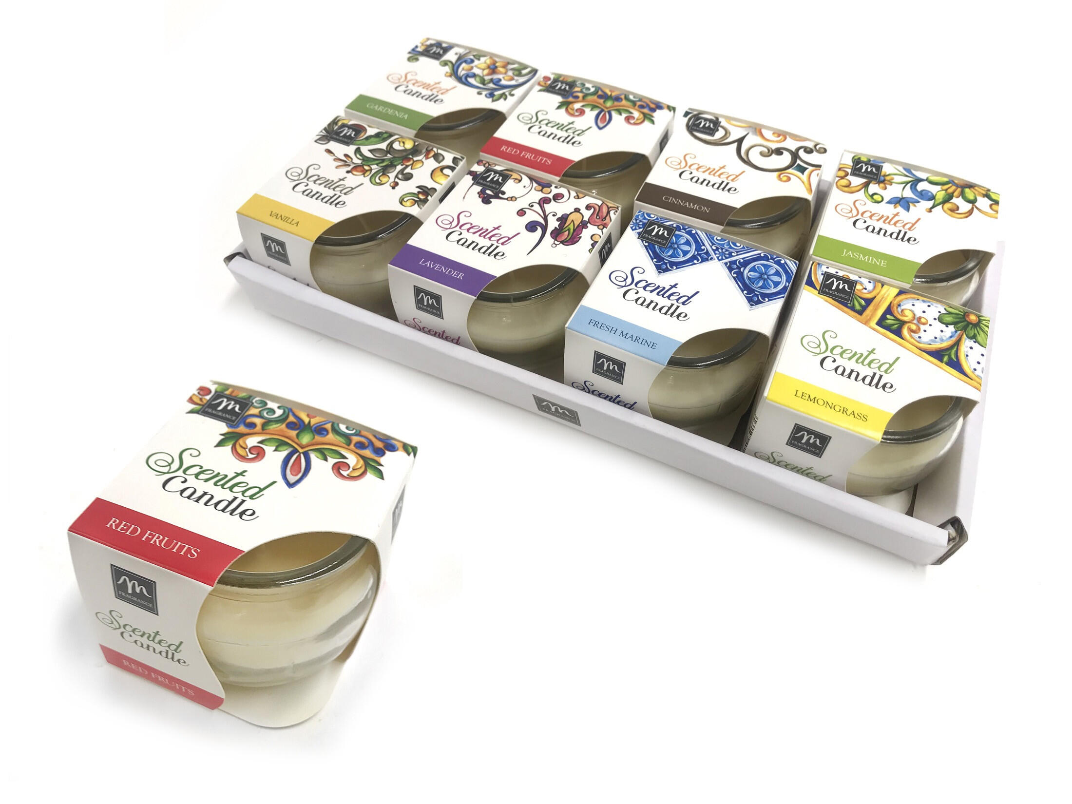 01241 - candela in bicchiere di vetro 85 gr. fragranze assortite