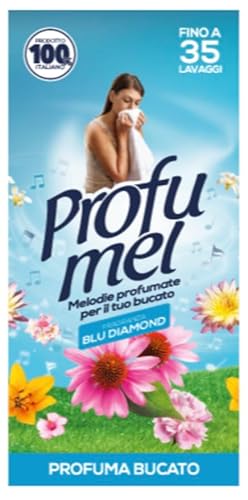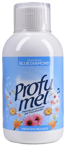 Profumel Bucato Blue Diamond, Aroma disinfettante per il lavaggio, Ammorbidente intenso a lunga durata, Olio essenziale, 250ml, 35dosi, floreale, muschiato e ambra, bergamotto e litchi, Luxury-Smell