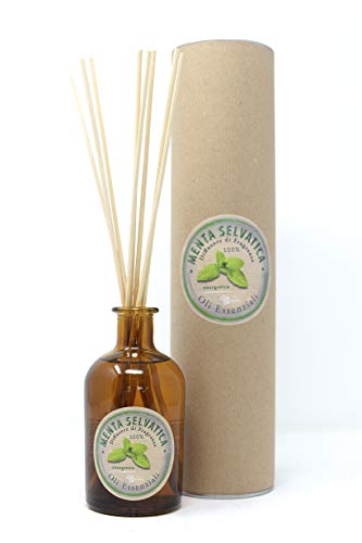 Profumo per ambienti 250 ml menta selvatica con 8 bastoncini in bamboo. Risveglia la mente, dona chiarezza e favorisce la concentrazione.