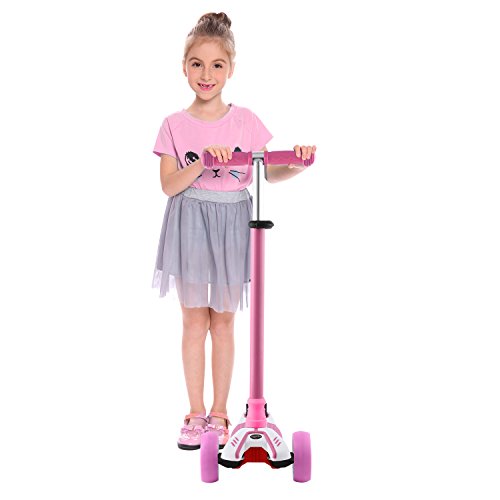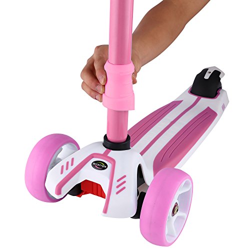 Profun Monopattino Scooter Pieghevole con 4 Ruote PU con Luci LED Altezza Regolabile da 77-87CM con Freno Posteriore con Graffiti in Tavolo Sicuro per Bambini 3-12 Anni (Type2 Rosa)