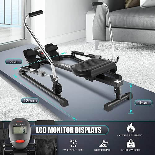 【12 livelli di resistenza idraulica regolabile】 I 12 livelli di resistenza del cilindro idraulico possono creare un esercizio di voga versatile. Puoi facilmente controllare il pulsante per regolare manualmente la tensione in base all'intensità dell'esercizio e tenere il manubrio antiscivolo per ruotare completamente le braccia. Adatto per l'esercizio familiare e l'intera famiglia può ottenere un cardio sano ed efficiente a casa.