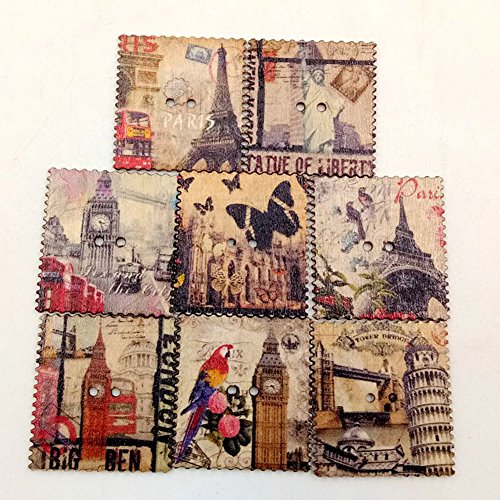 Profusion Circle 50PCS retro cartoline di bottoni in legno torre orologio modello 2 fori cucito fai da te scrapbooking Craft