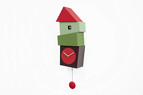 PROGETTI Orologio a cucù da Parete 16X10X52cm Crooked Legno Scuro E Rosso-Verde Sala Alberto
