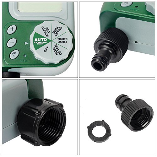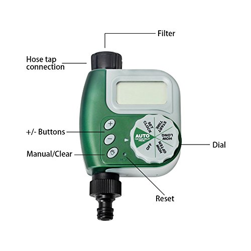 Grande schermo LCD con programmazione logica Easy-Set - L'ampio display digitale, il quadrante sovradimensionato e semplici controlli rendono la programmazione veloce e facile. Durata di irrigazione da 1 a 240 minuti - ogni 6 ore, 12 ore o da 1 a 7 giorni.