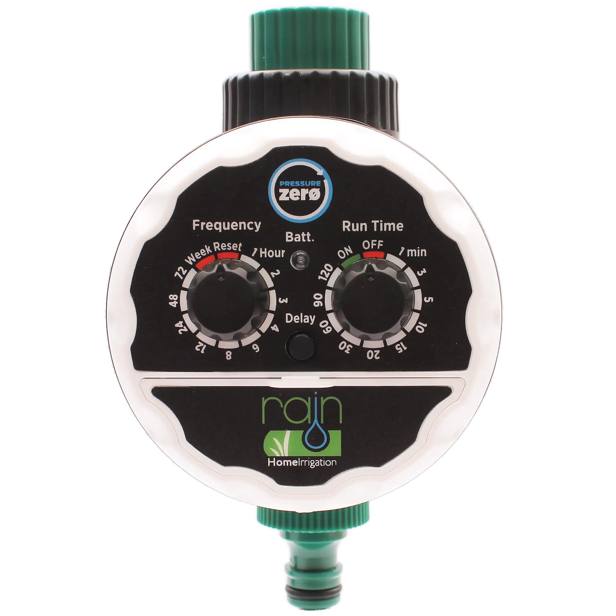 Programmatore elettronico a batteria con VALVOLA A SFERA incorporata che consente L'APERTURA E IL FUNZIONAMENTO GIA' DA PRESSIONE = 0 Numero settori 1 Attacco 3/4"-1" - Uscita 3/4"M Alimentata con 2 batterie alkaline 1.5 volt (AAA) Materiale di fabbicazione ABS Fino a 4 irrigazioni al giorno tempi di irrigazione da 2 a 120 minuti. Ideale per l'irrigazione di balconi o terrazzi, anche se la pressione dell'acqua è minima. Puoi abbinarlo al KIT 30 VASI (codice articolo 82584788) o al KIT ALA GOCCIOLANTE 25 MQ (codice articolo 82584791). Funziona anche con pressioni dell'acqua molto basse ( acqua a caduta da cisterne o contenitori ). Le due manopole consentono di programmare la frequenza dell'irrigazione e la durata. Il tastino in gomma consente di ritardare l'ora della prima partenza fino ad un massimo di 2 ore.. La prima partenza avverrà trascorso il tempo della frequenza