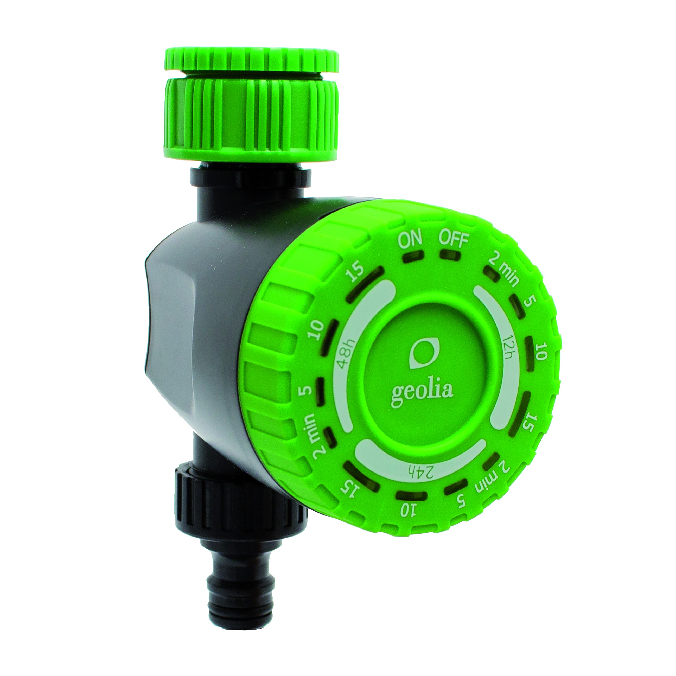 Programmatore elettronico a batteria con elettrovalvola incorporata - Numero settori 1 - Attacco 3/4"-1"" - Uscita 3/4"M - Alimentata con 2 batterie alkaline 1.5 volt (AAA) Materiale di fabbicazione ABS - Valvola a membrana Pressione di utilizzo: min 1.0 max 6.0 bar Portata massima min. 5 l/min max 40 l/min CARATTERISTICHE PROGRAMMAZIONE CLICK: Numero programmi 1 Tempi di irrigazione: 2-5-10-15 min Frequenza: 12-24-48 ore. Ideale per l'irrigazione di balconi o terrazzi.. Può essere utilizzato per la micro irrigazione a goccia di vasi e orti. Puoi abbinarlo al KIT 30 VASI (codice articolo 82584788) o al KIT ALA GOCCIOLANTE 25 MQ (codice articolo 82584791). La facile programmazione con un solo tasto consente d'irrigare per cicli d'irrigazione senza inserire l'ora di partenza
