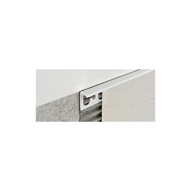 Profilo in resina vinilica per rivestimenti Proterminal resina vinilica nero h=10 mm l=2.70 ml Proterminal è un prolo a forma di “l” da applicare agli angoli esterni dei rivestimenti e come chiusura perimetrale dei rivestimenti. la sua particolare sezione e la molteplicità di colori, lo rendono un prolo molto elegante ed apprezzato. materiale proterminal è un prolo a forma di “l” in resina vinilica atossica antiurto colorata disponibile nelle altezze 6 - 8 - 10 - e 12.5 mm. il prolo è dotato di una aletta traforata che ne garantisce una perfetto ancoraggio con l'adesivo impiegato. la parte verticale, a contatto con la pavimentazione, presenta delle scanalature per favorire l'aggancio con lo stucco. l'elevata gamma di colori, combinata alla disponibilità in diverse altezze, rendono proterminal un prolo molto elegante ed apprezzato. campi di applicazione proterminal in resina vinilica atossica antiurto è idoneo a parete in ambienti interni. avvertenze non utilizzare proterminal in