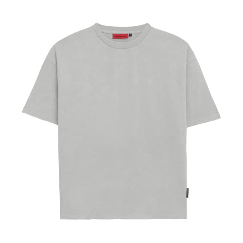 Prohibited Blanks - Maglietta basic oversize, tinta unita, con cotone da 250 g/mq, scollo rotondo, boxy fit, grigio, L